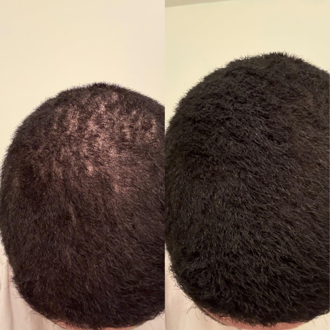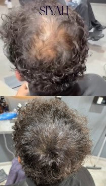 No need for a hair transplant or hair powder to look less bald. Here, you can clearly see the difference after just one application of Siyah.